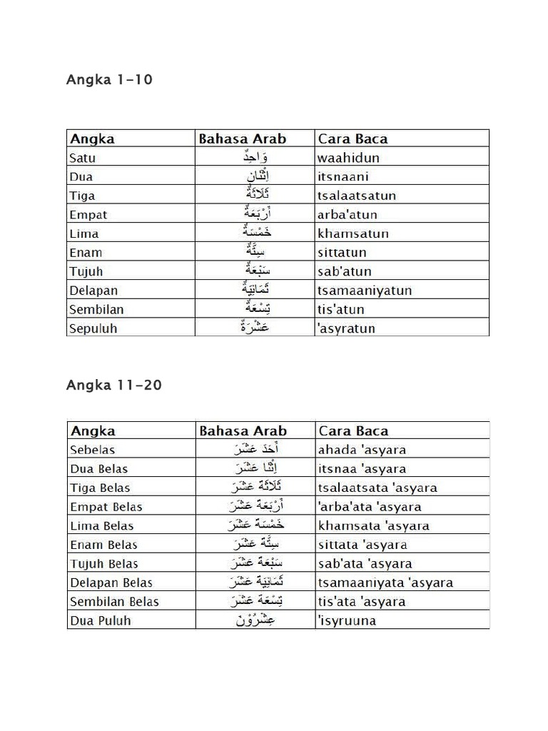 Angka 1 Sampai 100 Dalam Bahasa Arab Pdf